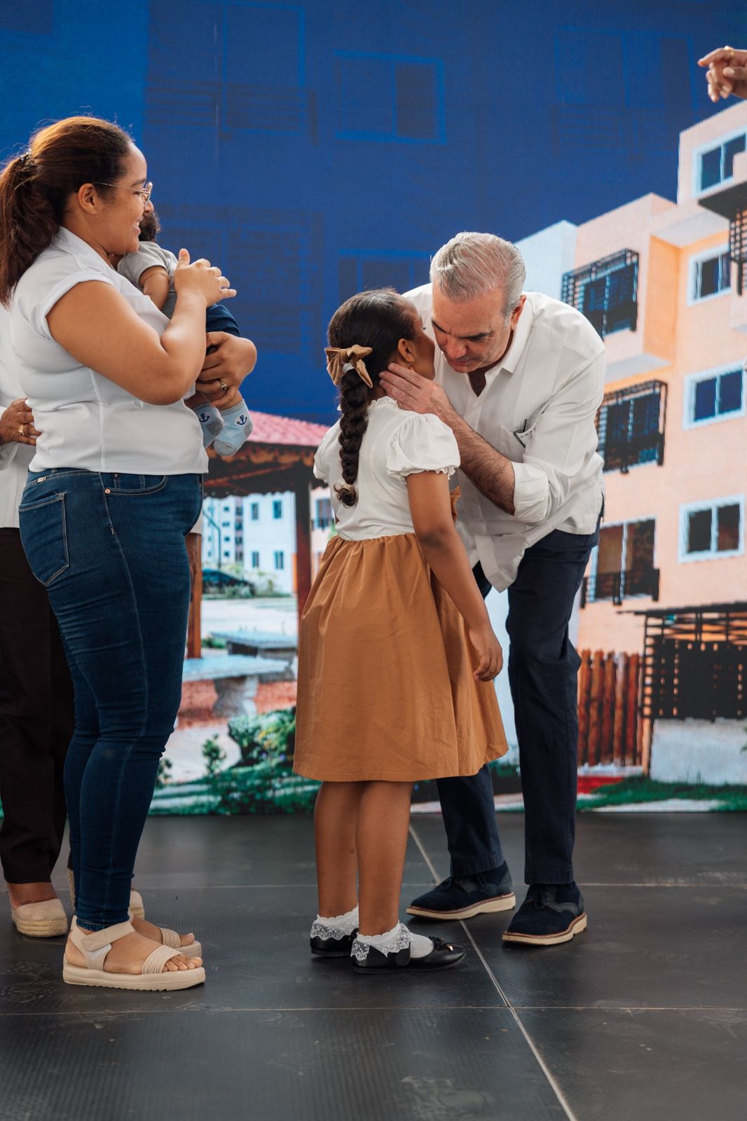 Acompañaron al presidente Abinader y al ministro Bonilla: Lucrecia Santana Leyba, gobernadora de la provincia Santo Domingo; Alexis Jiménez, viceministro de Desarrollo Social del Ministerio de la Presidencia; Antonio Taveras Guzmán, senador de la provincia Santo Domingo; Wendy Noribel Cepeda Polanco, directora de la Junta Municipal de San Luis; John Anderson, del Fondo Nacional de la Vivienda (Fonvivienda); Juan Antonio Bisonó, vicepresidente de la Constructora Bisonó, y Brandon Paniagua Bisonó, gerente de proyectos de esa empresa.