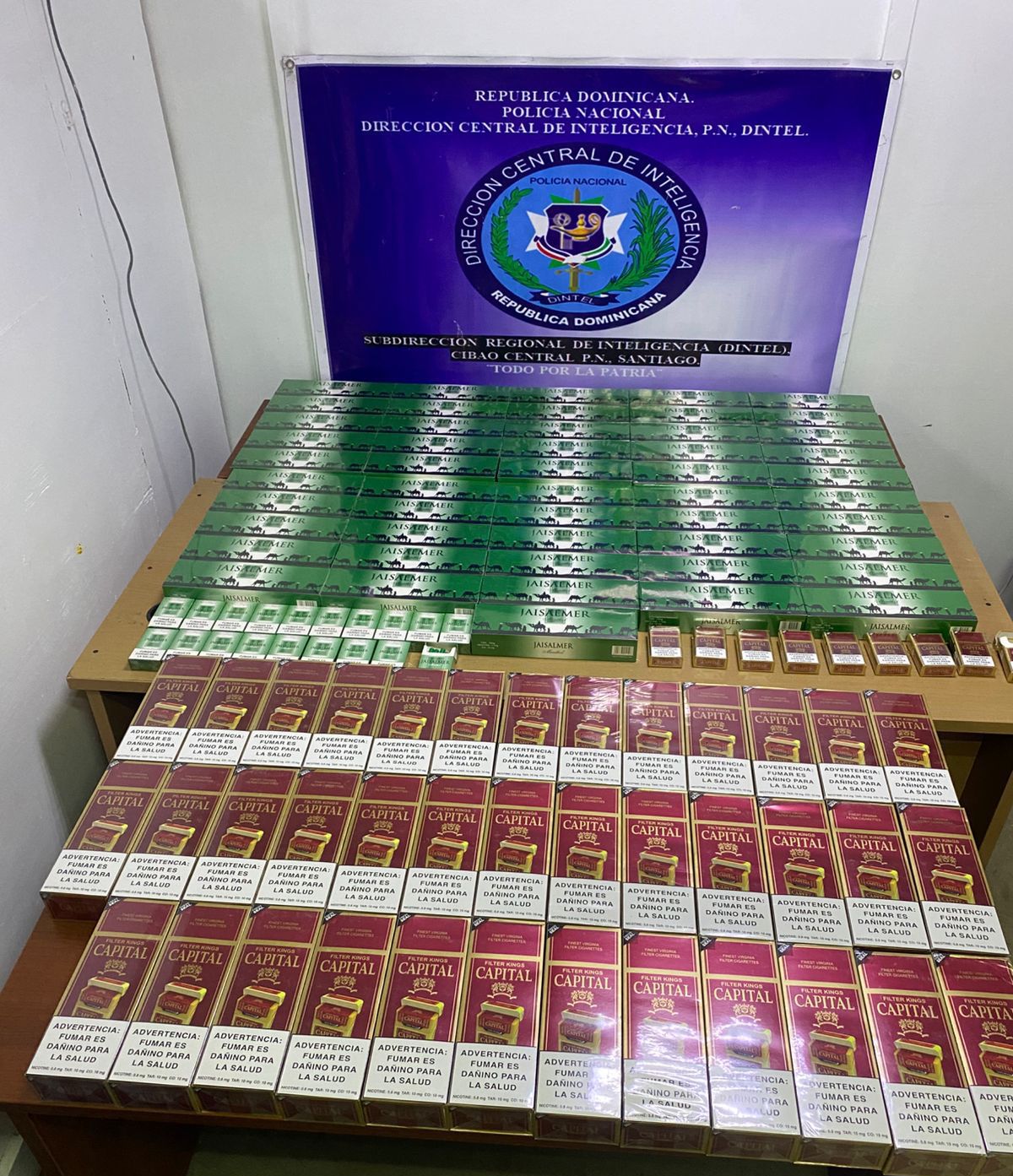 Asimismo, fueron confiscadas 18,338 unidades de cigarrillos de distintas marcas, las cuales eran comercializadas de manera irregular, junto a 380 unidades adicionales encontradas en otro de los allanamientos.