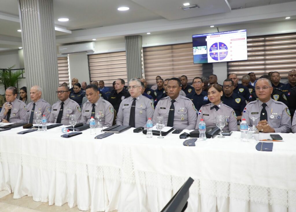 La sesión de trabajo se está llevando a cabo en el Salón del Club de Oficiales del Palacio de la Policía Nacional. En ella se evalúan las tareas cumplidas hasta la fecha, los resultados alcanzados y las nuevas disposiciones que serán adoptadas para continuar elevando los niveles de seguridad en beneficio de los dominicanos.